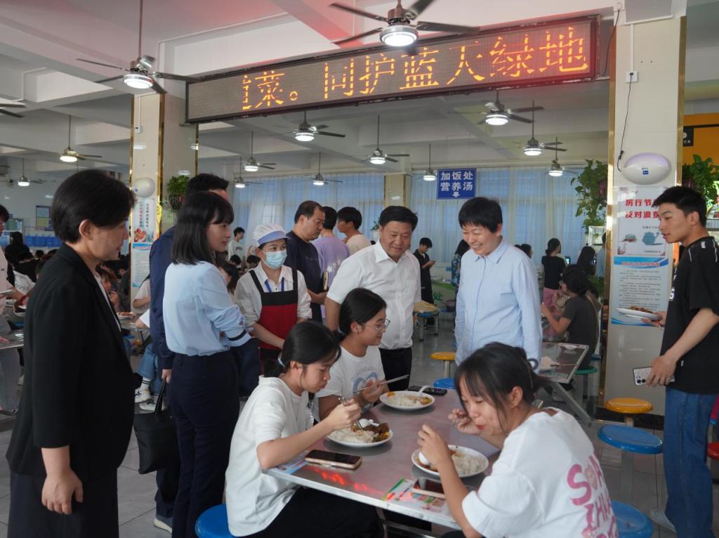 劉力群一行在潯陽(yáng)校區(qū)教學(xué)樓和南區(qū)食堂實(shí)地查看了學(xué)校教育教學(xué)和食品衛(wèi)生安全情況。隨后,一行人前往八里湖新校區(qū),劉彪文和彭慧匯報(bào)了我校新校區(qū)總體建設(shè)以及學(xué)校搬遷入駐、開(kāi)學(xué)、校園管理等情況。